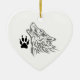 WOLF AND PAW PRINT CERAMIC ORNAMENT