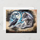 wolf and a raven sitting together on a rock under the full moon, illustrated in soft charcoal and pastel tones, capturing a mystical and serene moment in nature