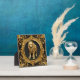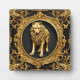 A striking image featuring a black wolf set against a luxurious gold ornamental frame, evoking a sense of mystique and power. The contrast between the sleek, gold fur of the wolf and the intricate, elegant details of the frame creates a visually captivating composition.