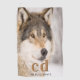 scandinavian, Nordic winter forest. A cute friendly almost smiling face. An animal with the fur in black, white and brown. Personalise and add your monogram initials and name. Golden and black block letters.