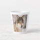 Close-up of a wolf head in a winter forest. A cute friendly almost smiling face. An animal with the fur in black, white and brown. Personalise and add your monogram initials and name. Golden and black block letters.