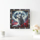 Elevate your space with a fantastical timepiece showcasing a white wolf under a glowing full moon. Vibrant red leaves and flying bats create a mysterious and enchanting vibe.