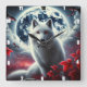 Wolf Full Moon Mystical Bats in Vibrant Colours Square Wall Clock