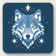 Detailed artwork depicting a stylised wolf surrounded by geometric patterns and stars, blending modern design with mystical elements.