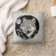 Throw pillow with a wolf, a mountain in the background, and a moon in the sky.
