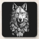 wolf head leaves animal original art drawing coaster
