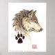 This image of a wolf head profile with wolf paw print was originally a tattoo design. The image was done in color pencils in a brown earth tone palette.