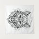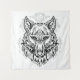 Wolf head front view with ethnic decorations and spiritual symbols of the moon and arrows. Predator front view portrait with curls and tribal ornaments.