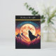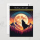 A lone wolf silhouetted against a full moon, howling in the night, with a starry sky and mountains in the background.