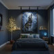 This dramatic digital artwork features a majestic grey wolf howling at a glowing full moon with lightning bolts striking through stormy clouds in the background. Perfect for creating a powerful, mystical atmosphere in your home or man cave with this epic wilderness scene.