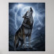 Wolf Howling at Full Moon with Lightning Storm Poster
