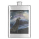 Wolf howling at the moon hip flask