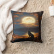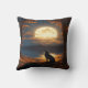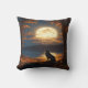 Wolf Howling Beneath Glowing Full Moon at Dusk Cushion
