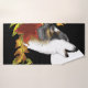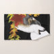A wolf howling at a full moon with autumn leaves and acorns in a backdrop of black