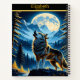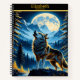 Wolf howls at the full moon in mountains notebook