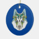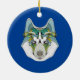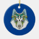 Illustration like graphic of the face of a wolf / husky with green & blue embellishments | customisable background colour