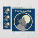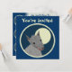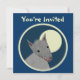 Custom two-sided invitation cards. Front has customisable "You're Invited". Back has invitation information--enter your event title, date, time, location, and a personal message. "Paper cutout" style furry wolf against a full moon, within a bordered circle. Fun animal design.