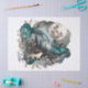 Wolf walking the landscape and Full moon in grey, teal and gold