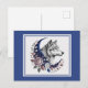 Wolf & Moon Postcard - Charming Mystical Wolf, Crescent Moon, Flowers