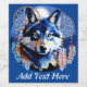 Beautiful Wolf with deep yellow eyes, with Native American Dreamcatcters, in a Wild Blue Mountains Landscape and Full Moon. Original Vector Round Logo Design isolated on white Copyright BluedarkArt TheChameleonArt.