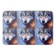 Pictured in a oil paint design is a pretty face of a wolf with a butterfly