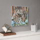 Alpha Male and young wolf pack in the dawn's early sunrise pine forest in winter.