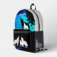 The alpha of the wolf pack is howling at the moon and the rest of the pack is following him on this full moon backpack. Can be personalised with anyone name.
