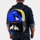 The alpha of the wolf pack is howling at the moon and the rest of the pack is following him on this full moon backpack. Can be personalised with anyone name.