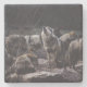 The coasters are gorgeous, a quality feel and heavy weight. They look like a precious archeological find. A rustic stone juxtaposed with a modern floral black and white print. I like the way the print goes slightly imperfect on the cut stone edges giving them a kind-of natural beauty.