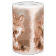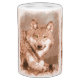 A wolf pencil sketch drawing image with browns, blue and yellow.