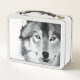 This is a standard metal lunchbox that appears to work just fine. We designed this box ourselves with an uploaded photo and custom text on the front and back. It looks absolutely beautiful except the front of the lunchbox is not centered like it shows in the photo. The print borders don't align with the inset flat part of the box where the preview photo online showed it perfectly centered in there. The back looks nice and centered though.
