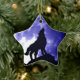 Wolf Silhouette & Full Moon Ceramic Ornament