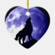 Wolf Silhouette & Full Moon Ceramic Ornament