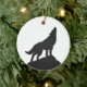 wolf silhouette howling - Choose background colour Ceramic Ornament