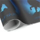 Gift wrapping tissue paper with a blue silhouette of a howling wolf pattern with the text wolf spirit.