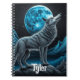 Personalised Blue and black fantasy art depicting a lone wolf standing on a mountain in front of a full moon. Ai generated art.
