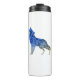 This design is the outline of a howling wolf with a blue to beige colour gradient and the silhouette of a tree inside.