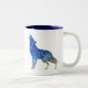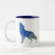 This design is the outline of a howling wolf with a blue to beige colour gradient and the silhouette of a tree inside.