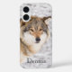Animal and nature theme. Hunting wolf on a lookout and guard in a winter forest waiting for it's prey, or maybe looking for you...? A beautiful and proud animal with thick fur in brown, white and black. Customise and add a name, black letters.