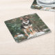 Wolfdog Square Paper Coaster. Beautiful photo of the Wolfdog Nox, standing on a rock, Bois de Vincennes, Paris, France. Photo by Tahoe Beetschen.