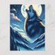 A wolf howls at the moon, bathed in its silvery light, against a backdrop of a star-strewn night sky and mountain peaks.