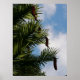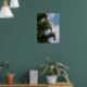 Poster with photo of wollemi pine tree with cones against a blue sky with white clouds