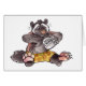 Here's a sad wolverine wearing yellow shorts with orange suns on them. We've all had days where we just want to lounge around in our shorts or pyjamas, eating comfort food. He's having one of those days... but now he's out of ice cream. Alas!