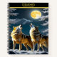 Wolves howl under a glowing moon notebook