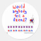 "Would Anybody Tell a Friend?" is one of the two most important messages in word of mouth. This big ideas is now on t-shirts, stickers, mugs, and more as a daily reminder of the value of WOM. And thanks to the amazing work of Hugh MacLeod, this bit of wisdom looks great too. Check out products featuring the other big idea, "Advertising is the Cost of Being Boring."