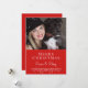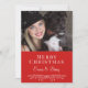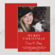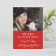 Adorable Christmas holiday card photo with a woman and her dog. White type on a red background. Simply add your names and replace this sample photo with your own.