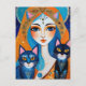 A weird woman cat hybrid with her two cats fantasy AI generated art