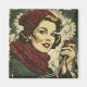 If you like vintage designs, this one will be perfect for you. It shows a woman holding a ball of yarn.