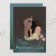 A beautiful card featuring a woman holding a baby is on a brown background that is the same colour as her hair.