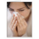 Woman blowing her nose.